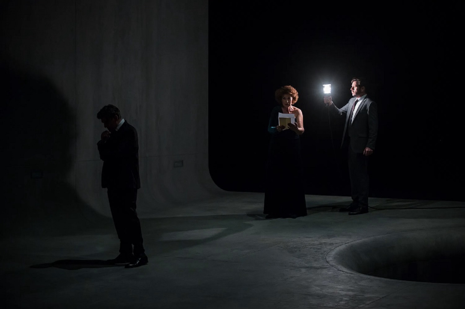 La mise en scène est très sobre, un seul gouffre en plein milieu de la scène. Mais l’illusion fictionnelle fonctionne à merveille, surtout au moment où Mélisande est prisonnière en haut d’une tour : il n’y a ni tour, ni longs cheveux, et pourtant par la magie de la représentation et de l’imagination, la scène semble se dérouler sous nos yeux.